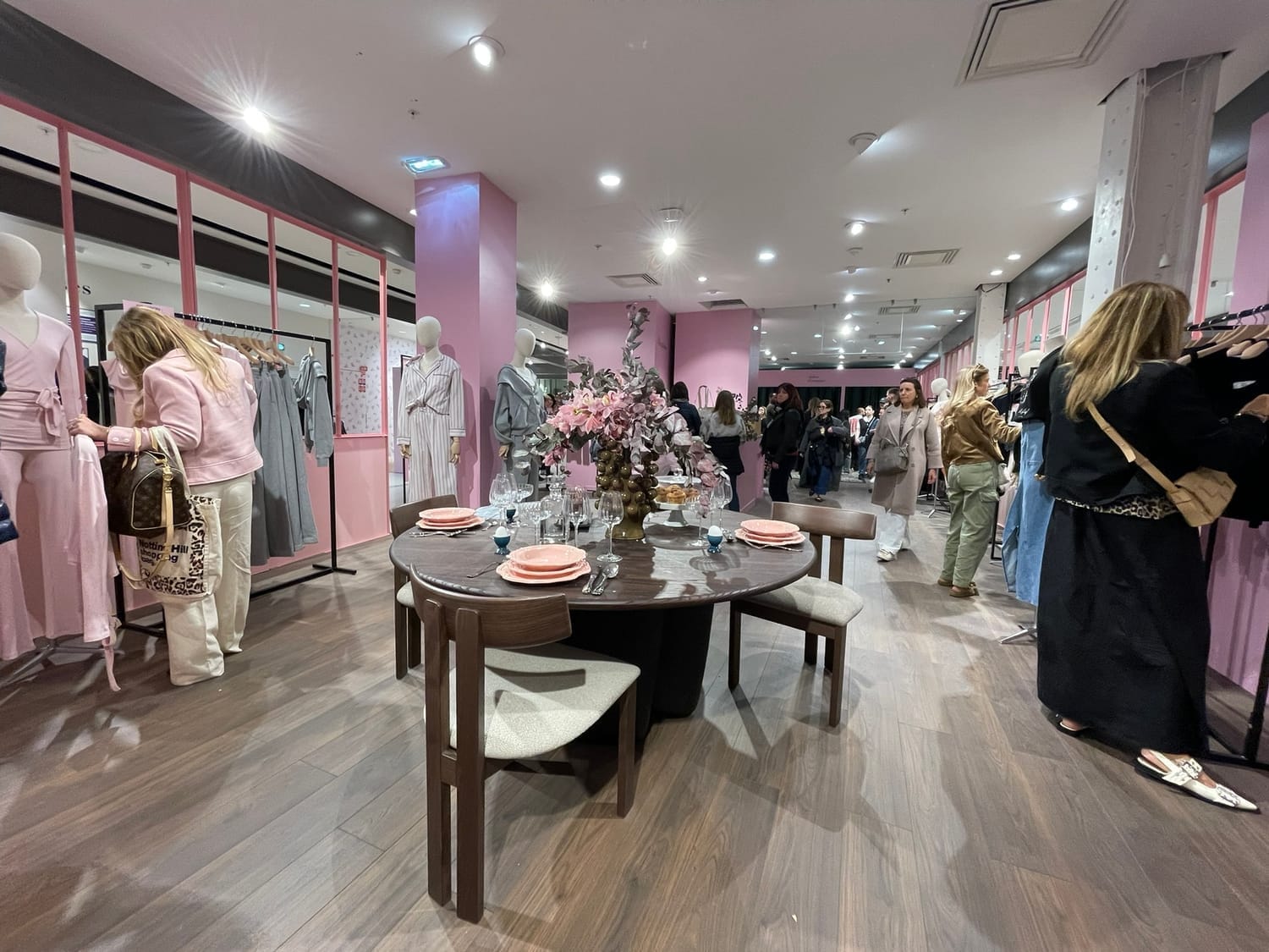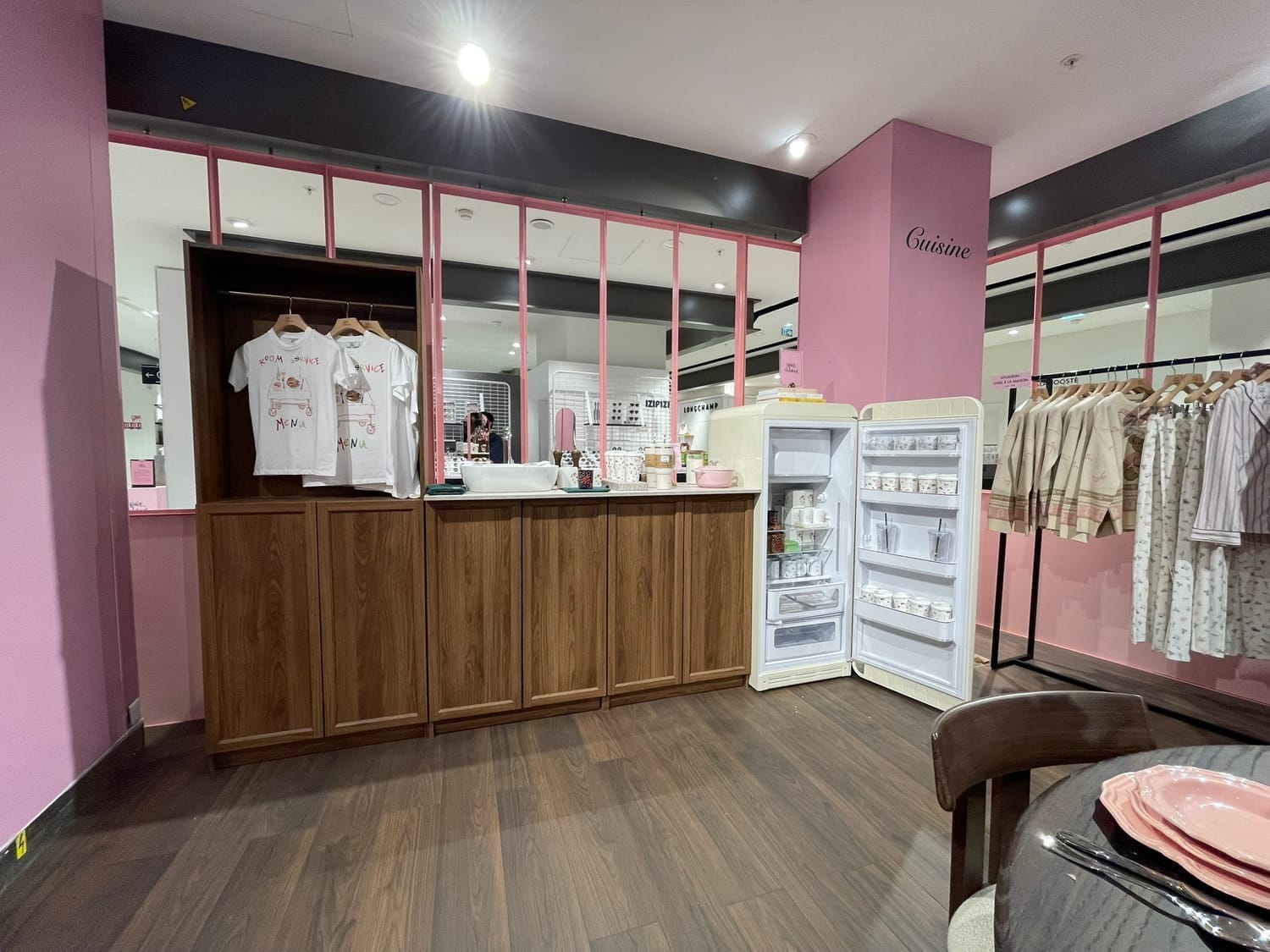 À l’intérieur, l’immersion continue avec une succession de podiums et de décors qui créent un chemin visuel jusqu’au pop-up.