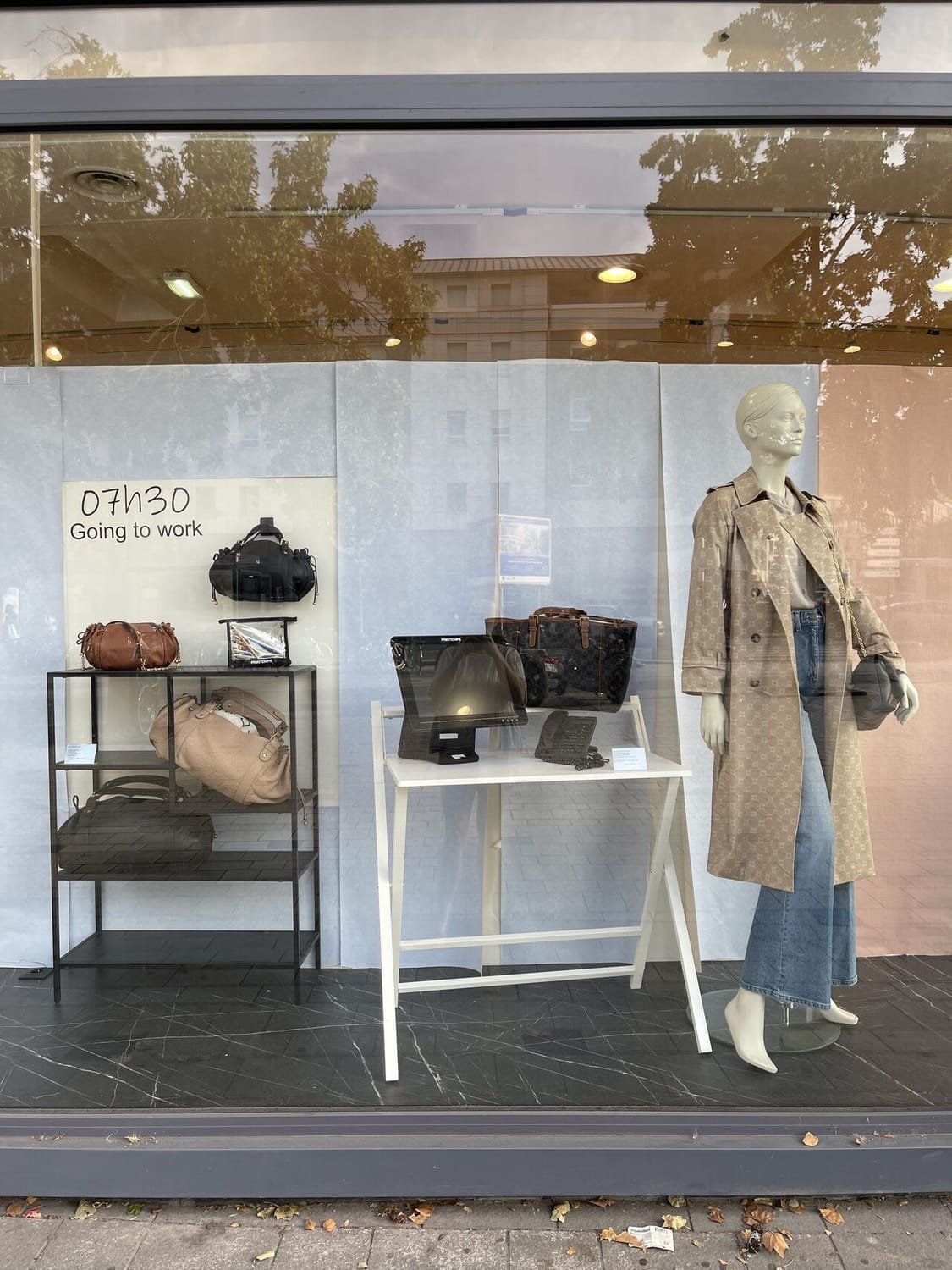 Chaque vitrine représente une tranche horaire de la journée, racontée à travers un scénario simple, visuel et ultra-parlant.